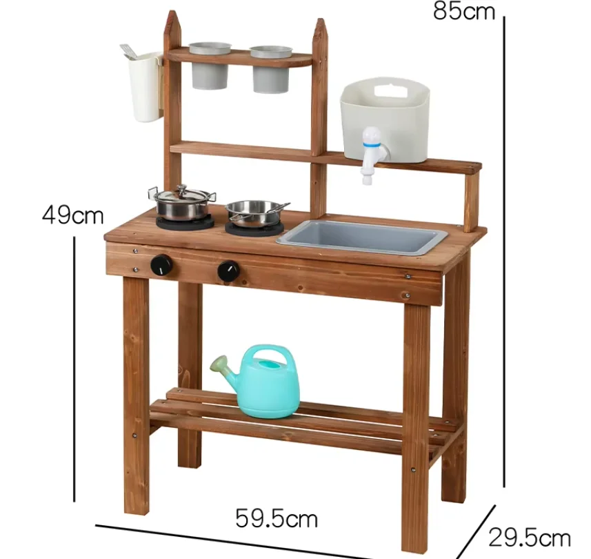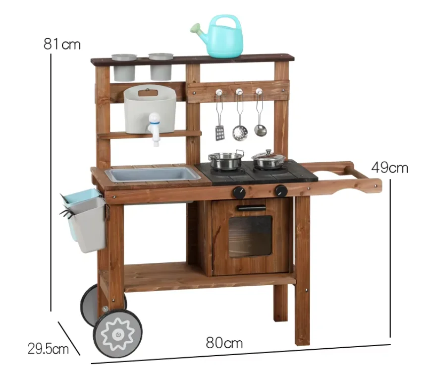 Outdoor Wooden Mud Kitchen Set with Garden Tools for Child Pretend Play Fun Toy for Boys & Girls Toddlers