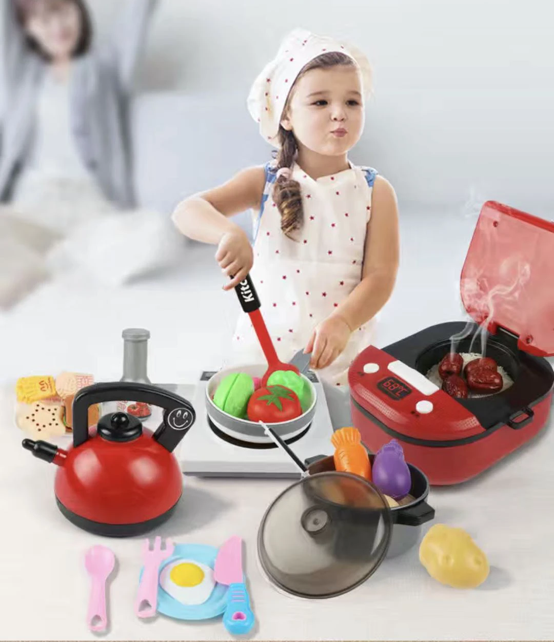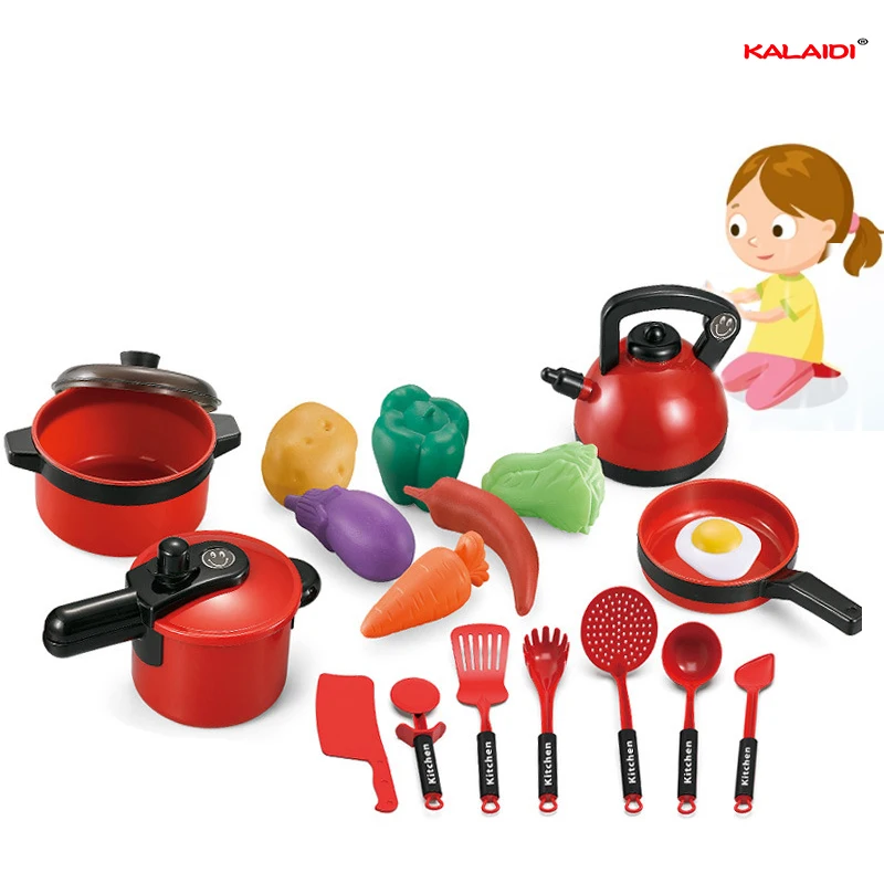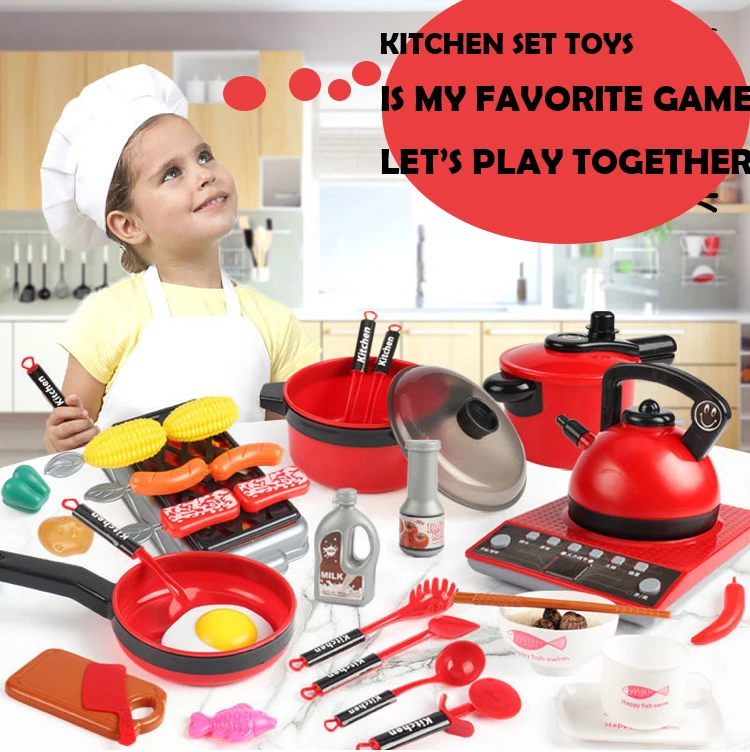 Popular Real Plastic Pretend Play Cooking Kit Set for Kids Happy Kitchen Table Toy Realistic Food Toys for Children