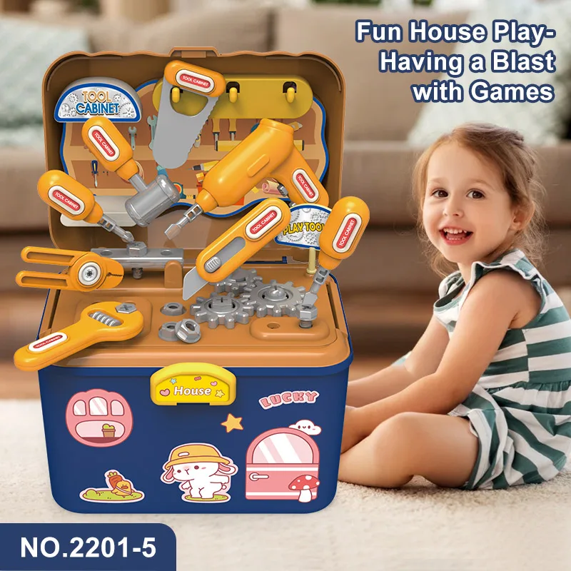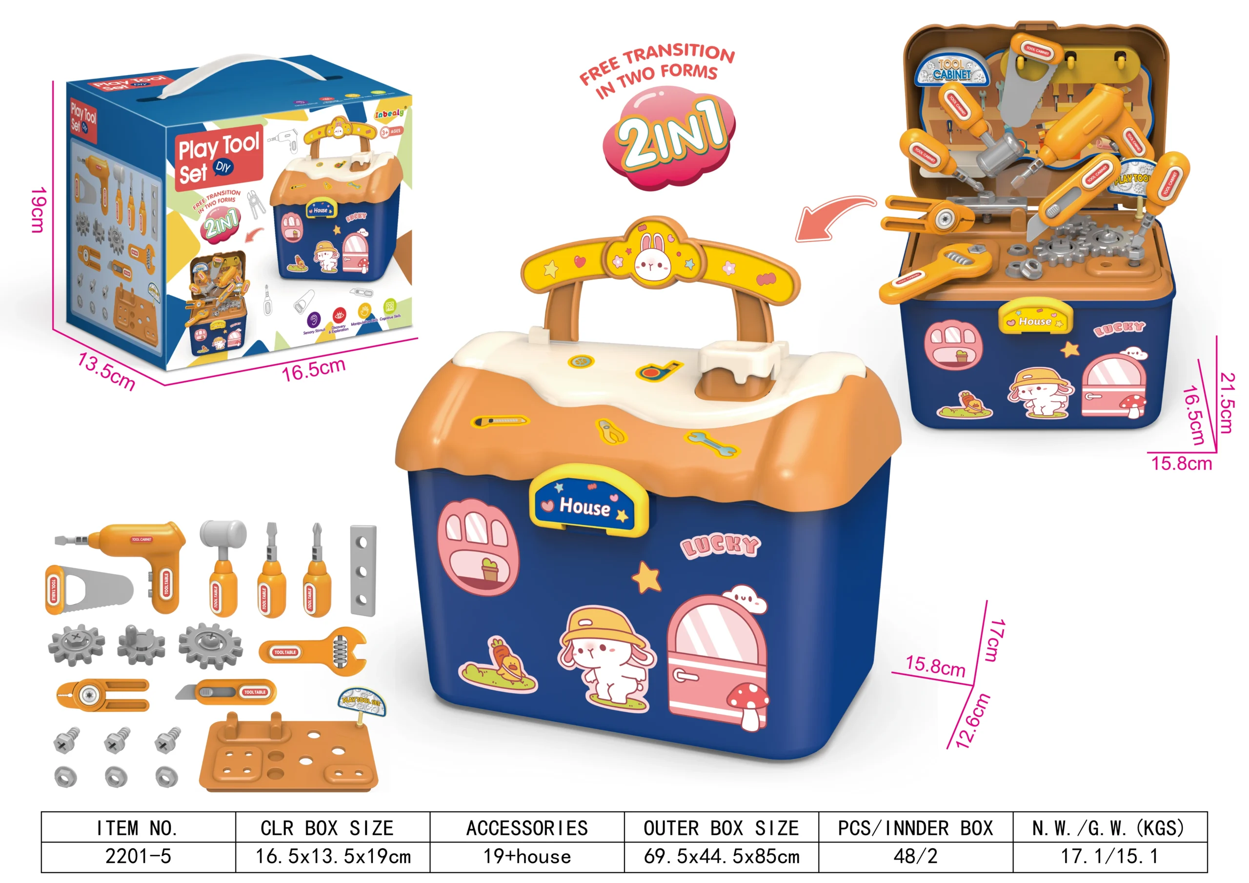 Pretend Play Repair Tool Toys Small House Storage Box Repair Kit 2 in 1 Toy Work Bench Storage Tool Box Toy Set for Kids