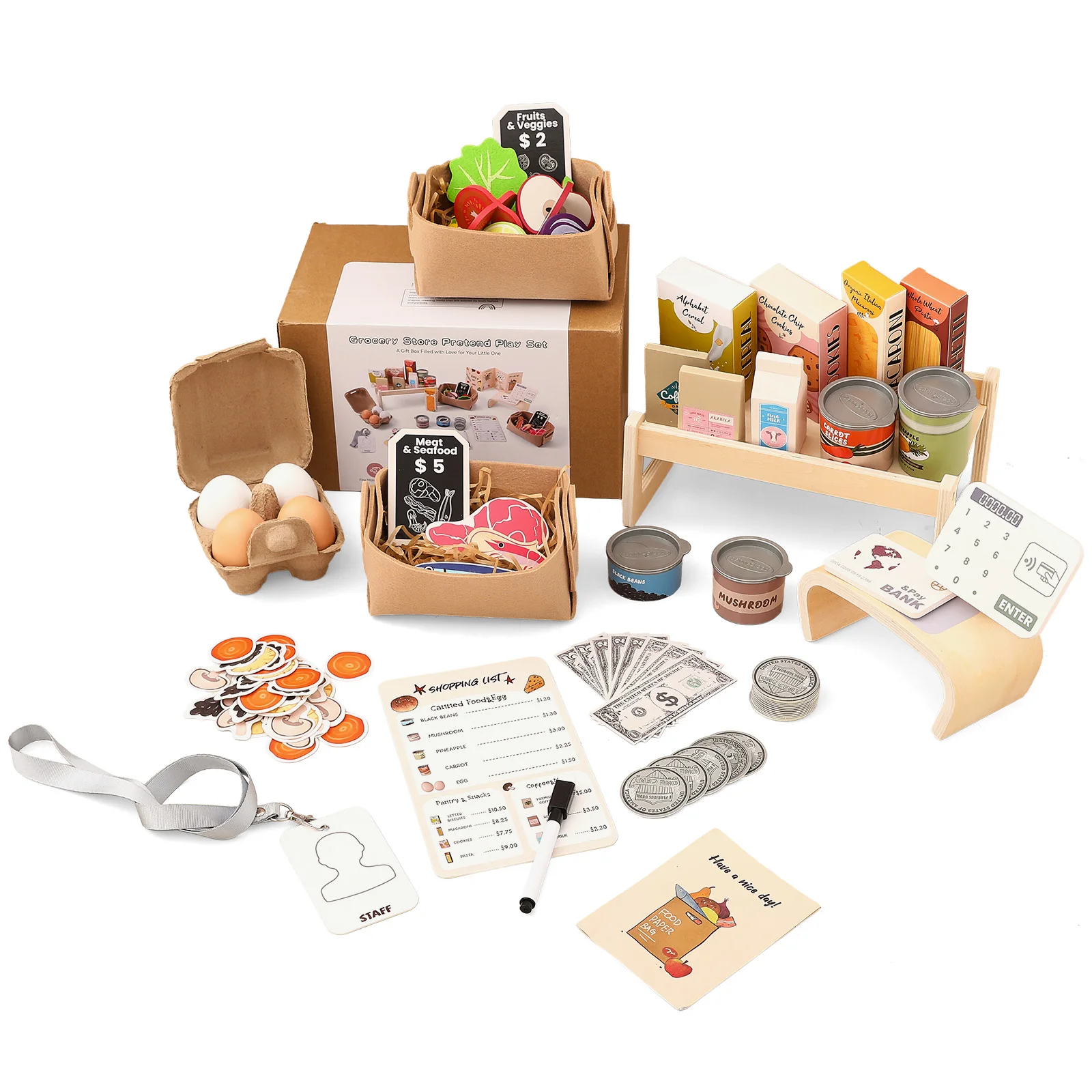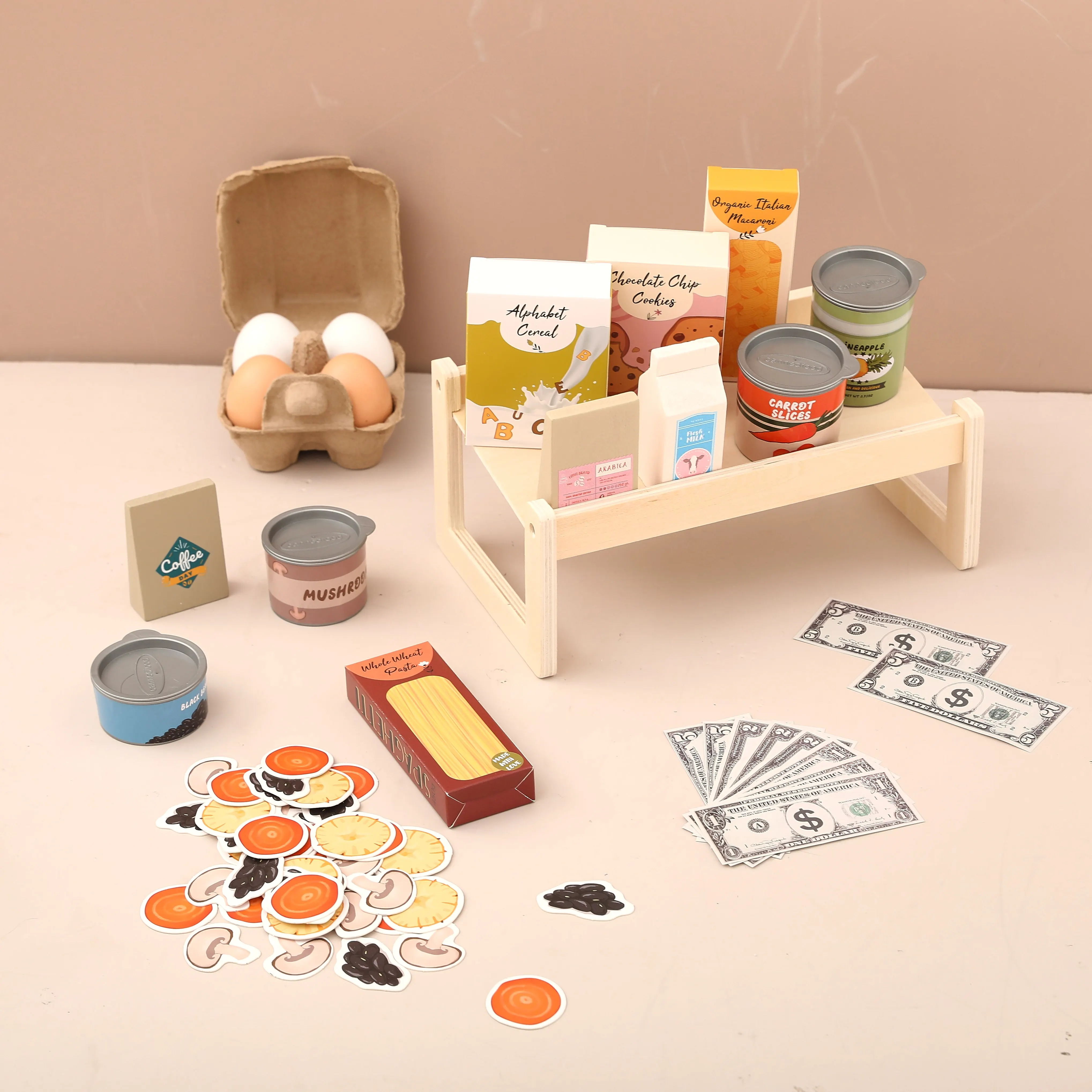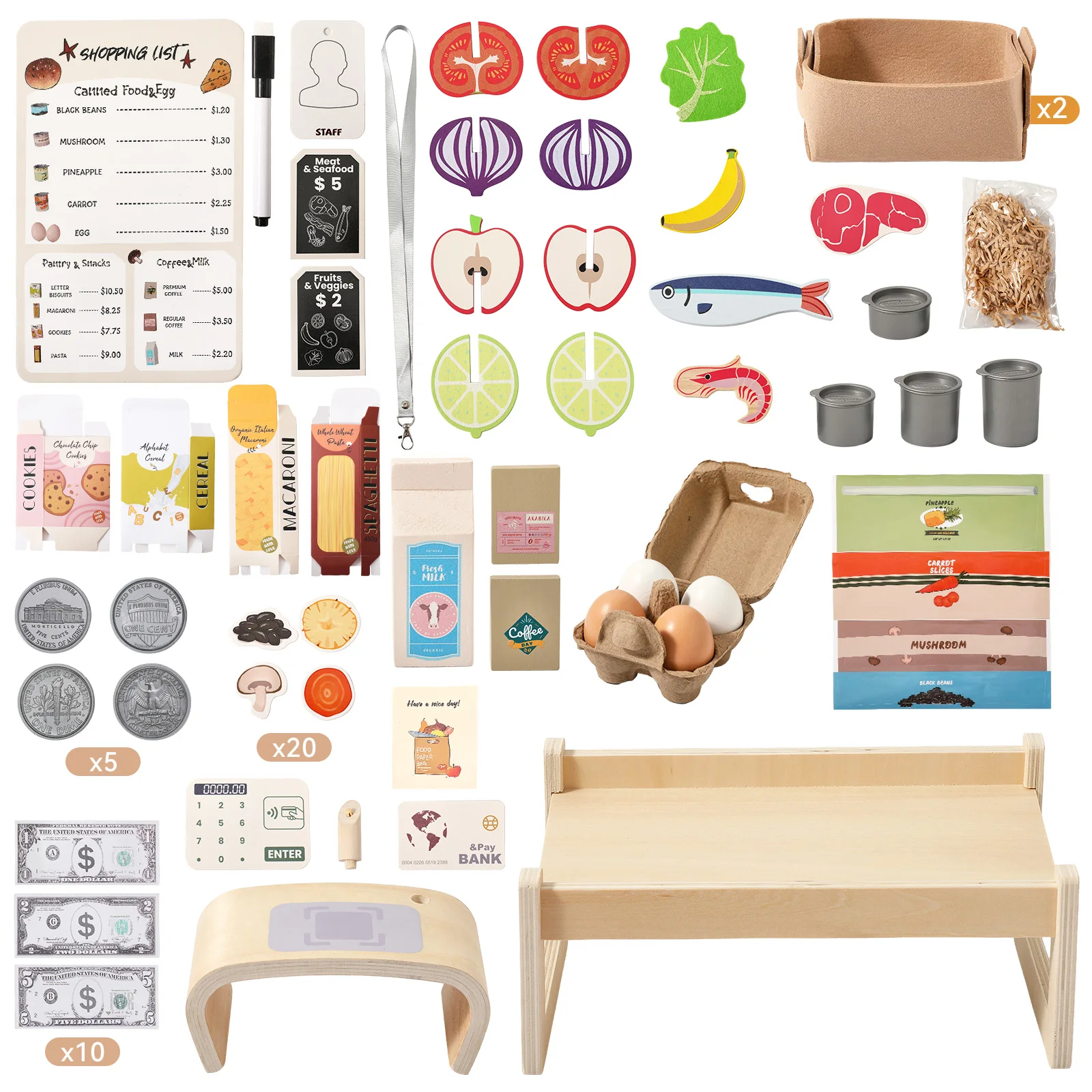 PTZ2506 Wooden Montessori Toy Set Food Market Game Early Educational Mini Preschool Role Play Kids Ages 2-6
