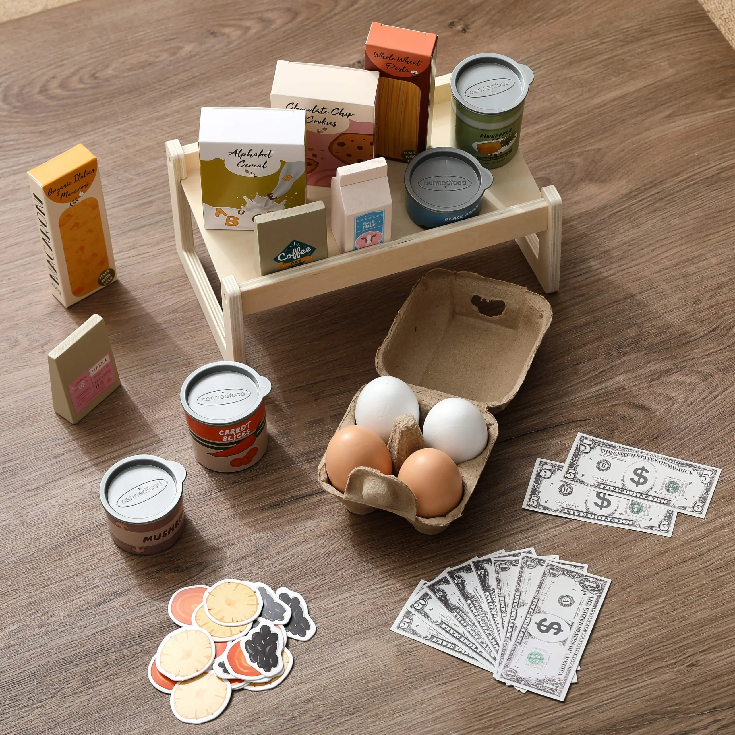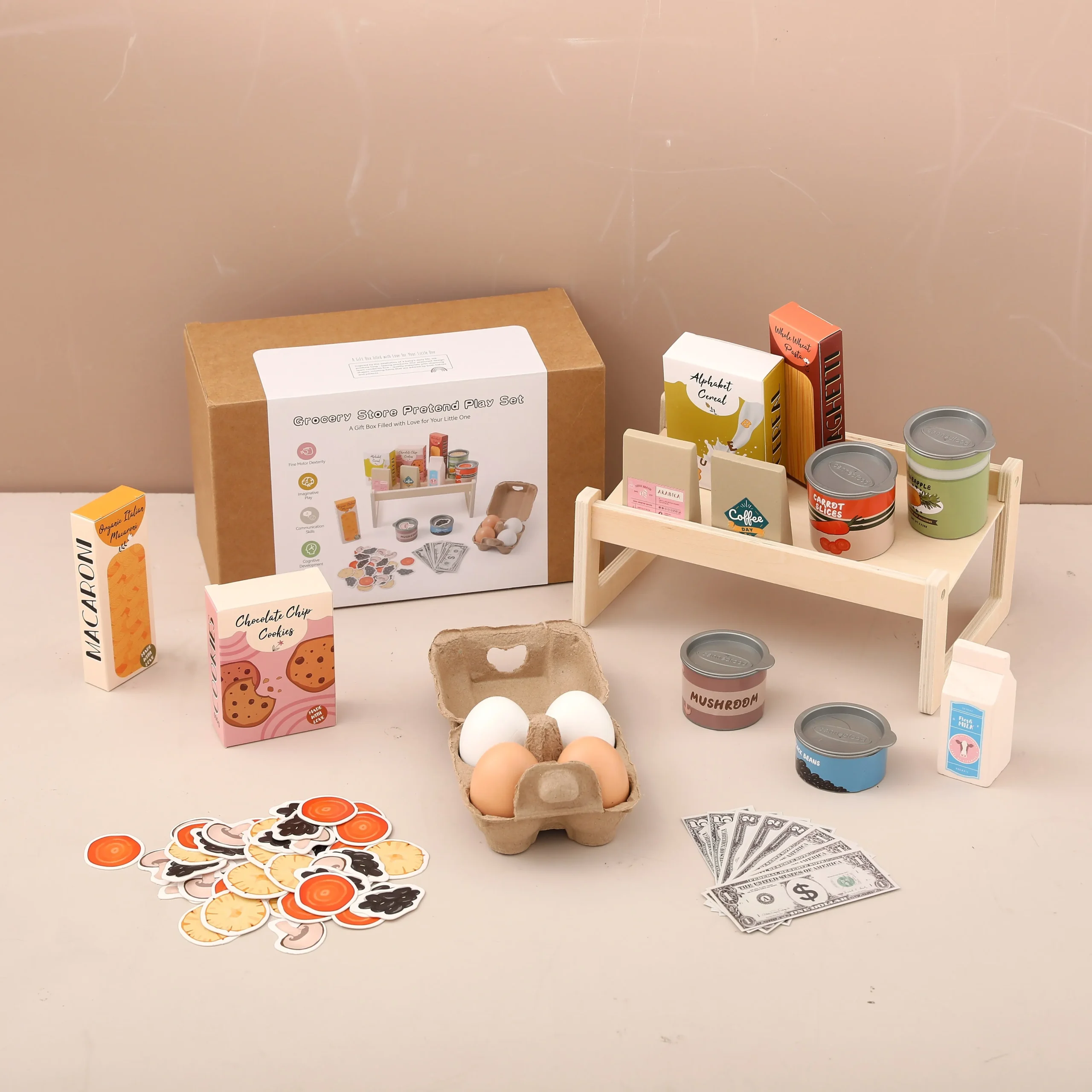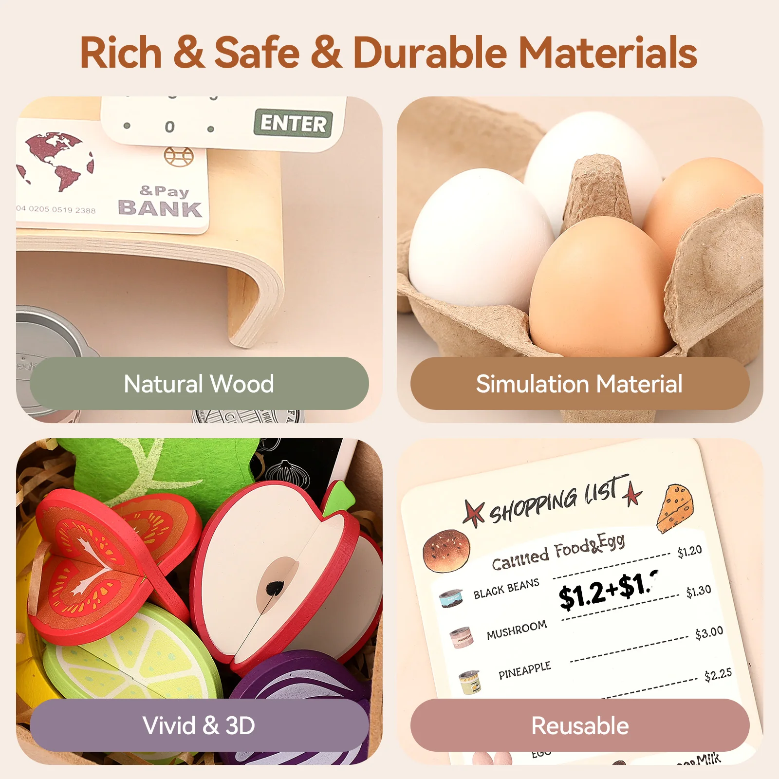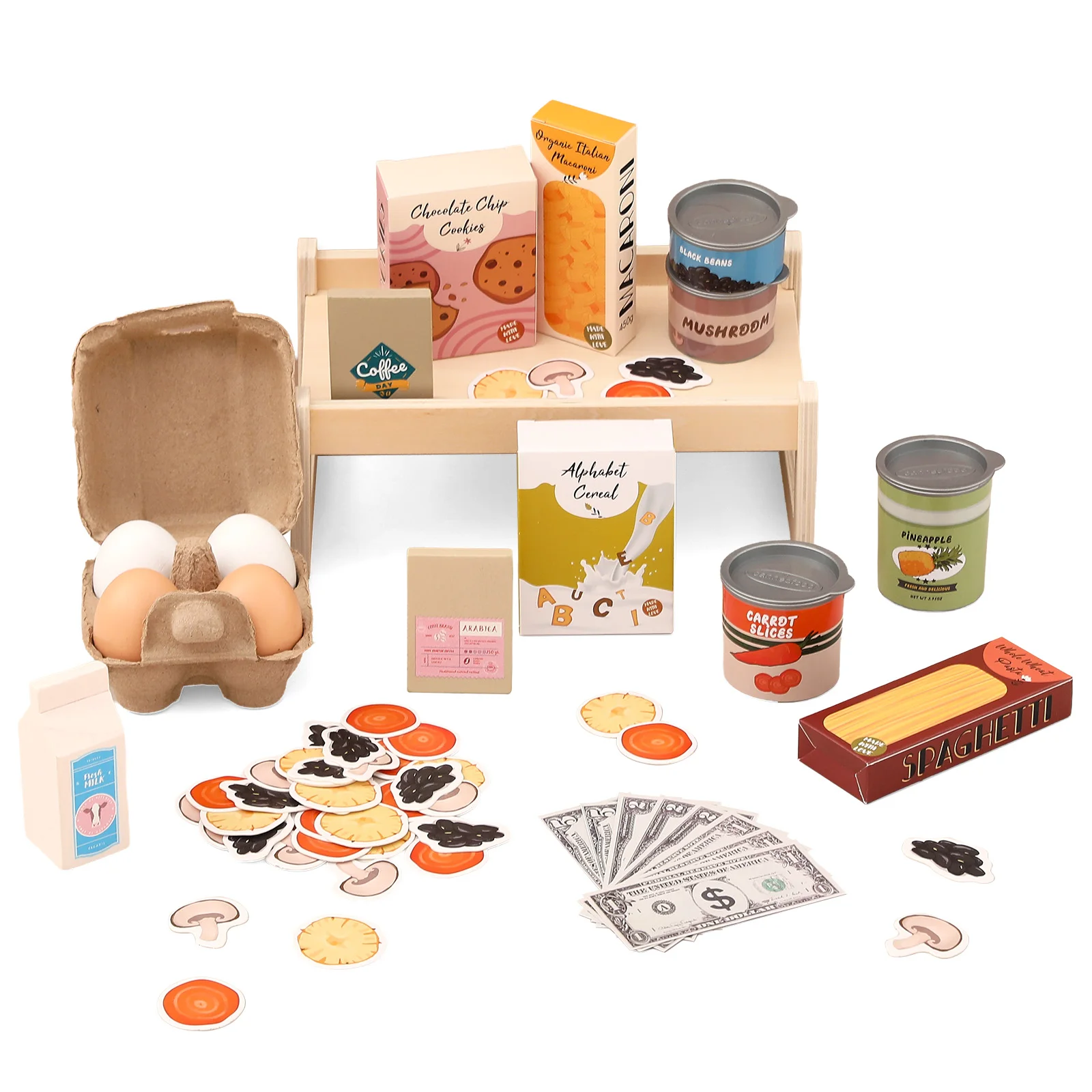 PTZ2506 Wooden Montessori Toy Set Food Market Game Early Educational Mini Preschool Role Play Kids Ages 2-6