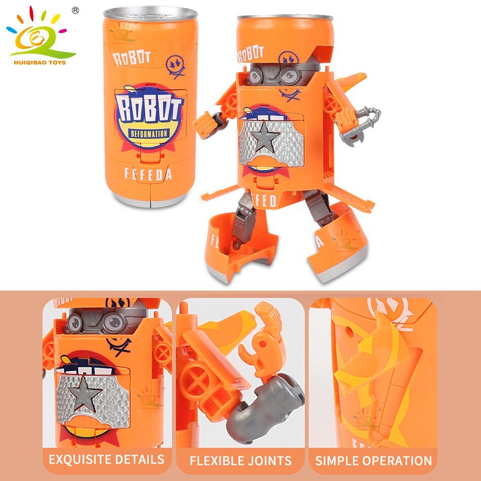 La transformation est facile et intuitive, permettant aux enfants de passer rapidement d’une canette à un robot en quelques étapes simples.