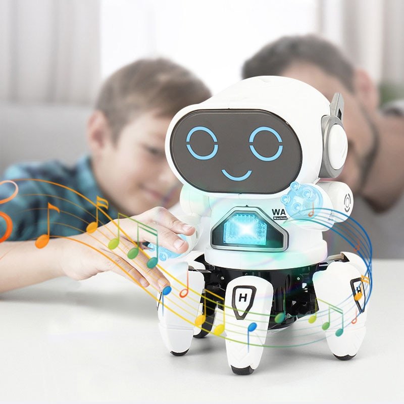 • Musique entraînante : Le robot diffuse des mélodies dynamiques qui incitent à la danse et à l’amusement.