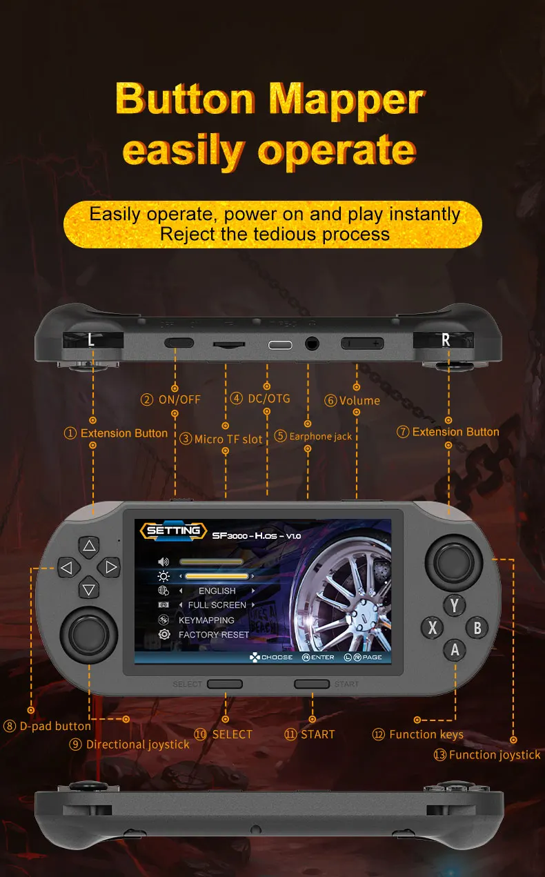 SF3000 Retro Handheld Video Game Console Linux System 4.5 Inch 854*480 IPS Screen 3000mAh Portable Pocket Video Player Game PS1