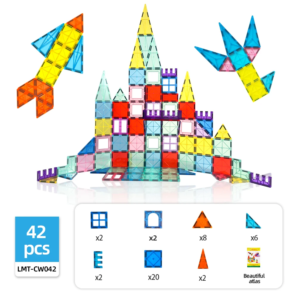 Shinlecobe Magnetic Toys Magnetic Tiles 42pcs Set for Age 3+ Building Blocks for Kids STEM Education Toy Gift for Boys and Girls