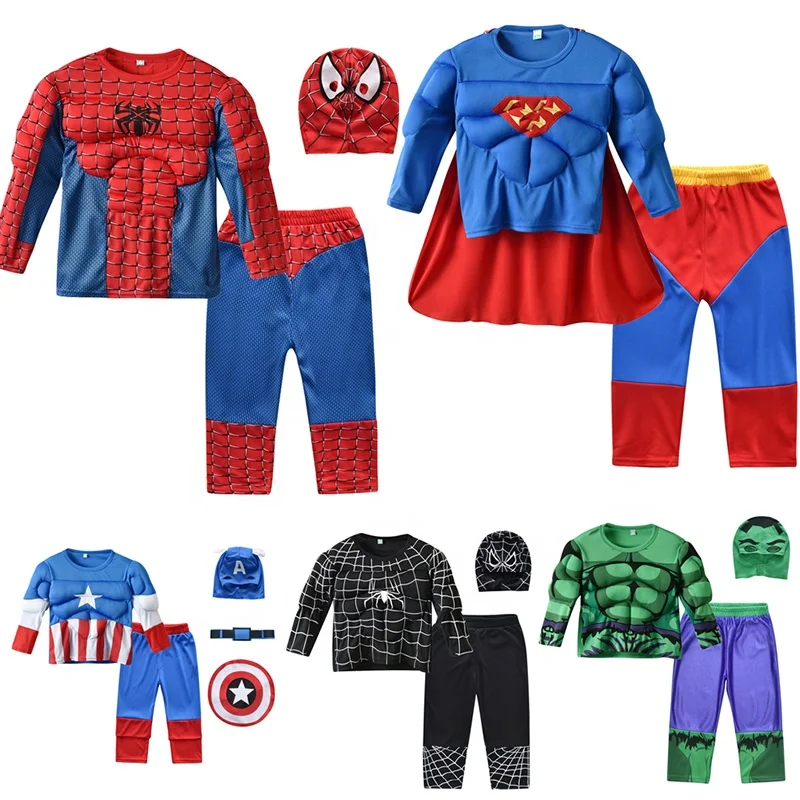 Spiderman Chidren Clothes Birthday Party Muscle Kids Boy Halloween Cosplay Hat Clothes Pants 3pcs Set