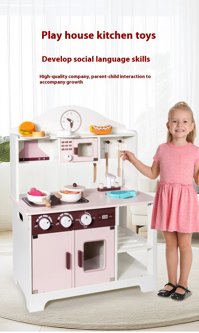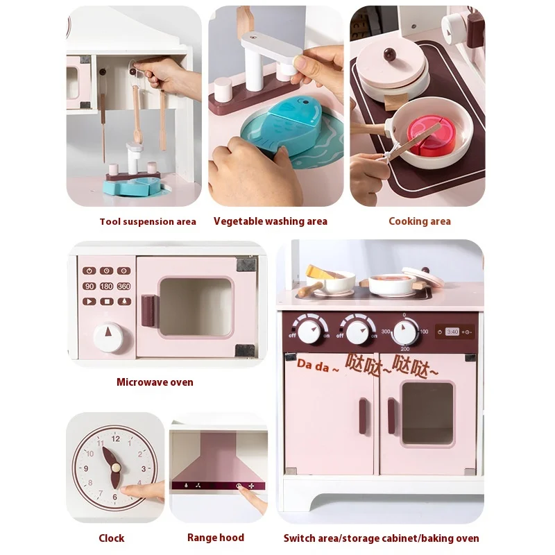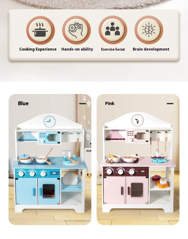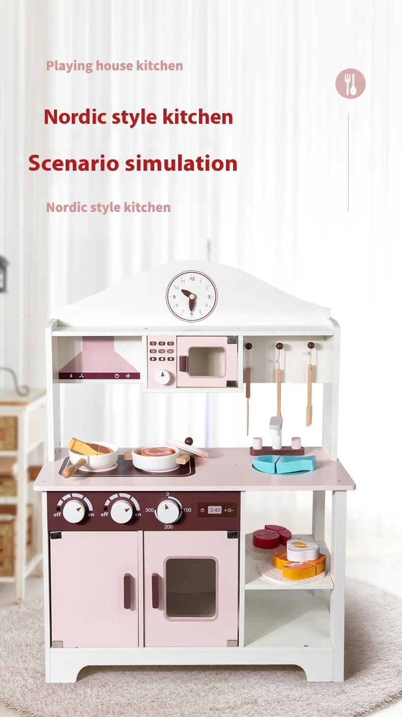 Unisex Children’s Wooden House Simulation Kitchen Cooking Stove Interactive Food Preparation Toys Educational Vienna Box