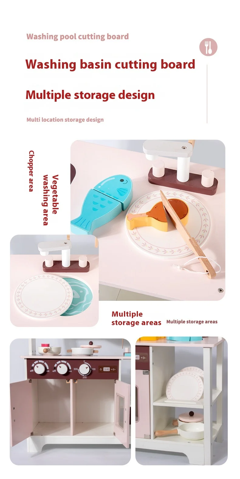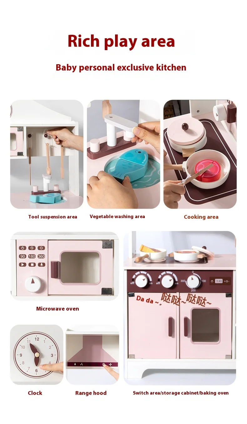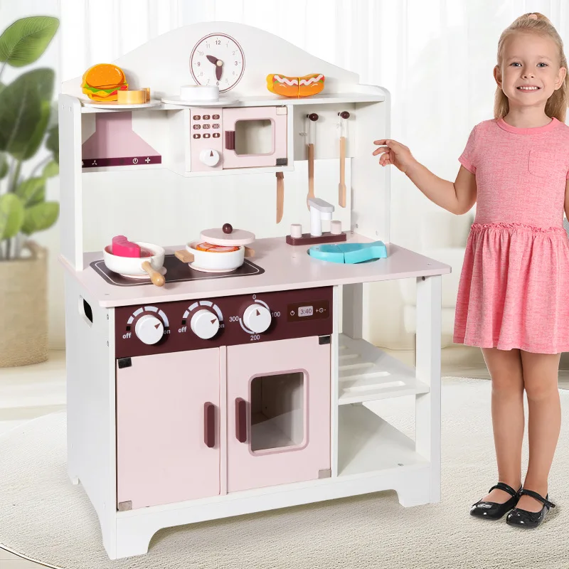 Unisex Children’s Wooden House Simulation Kitchen Cooking Stove Interactive Food Preparation Toys Educational Vienna Box