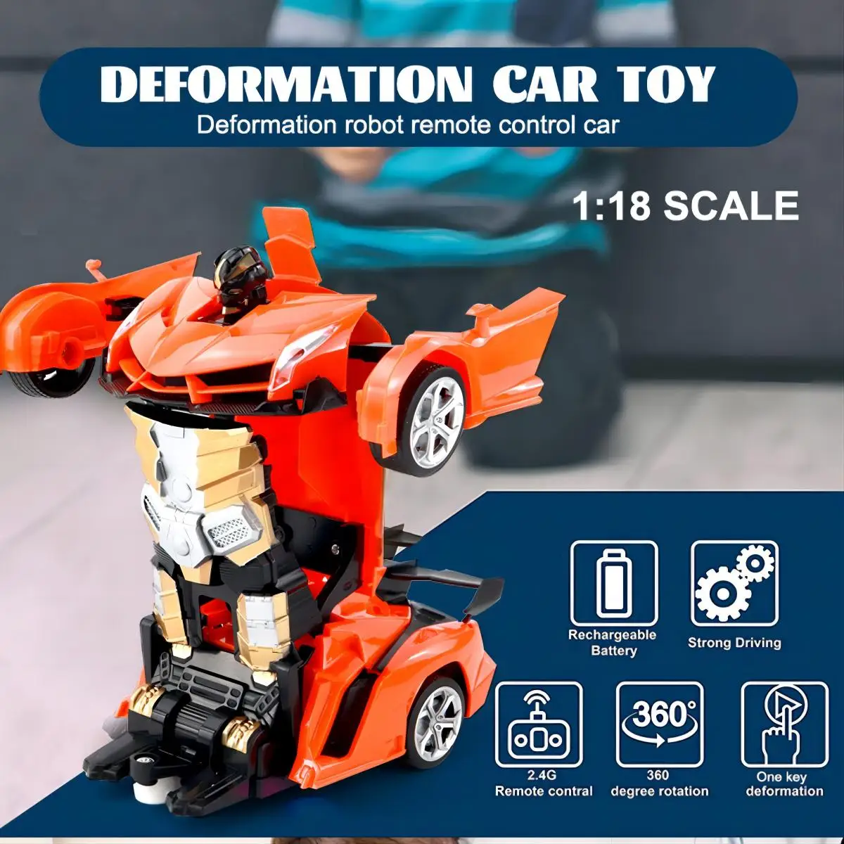 1/18 2 in 1 Transformation Robots Sports Vehicle Model Rc Car Deformation Robot Car Remote Control Car Toy for Children Gift