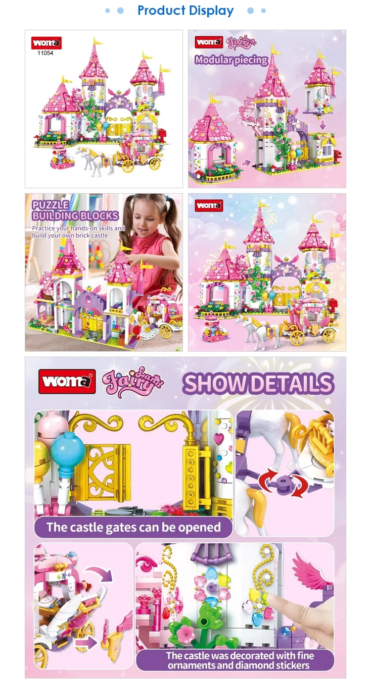 WOMA TOYS 11054 DIY Educational Building Block Set Princess Prince Fairyland Castle Model Toy Carriage Play House 11054 Pieces