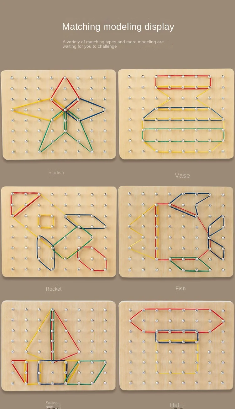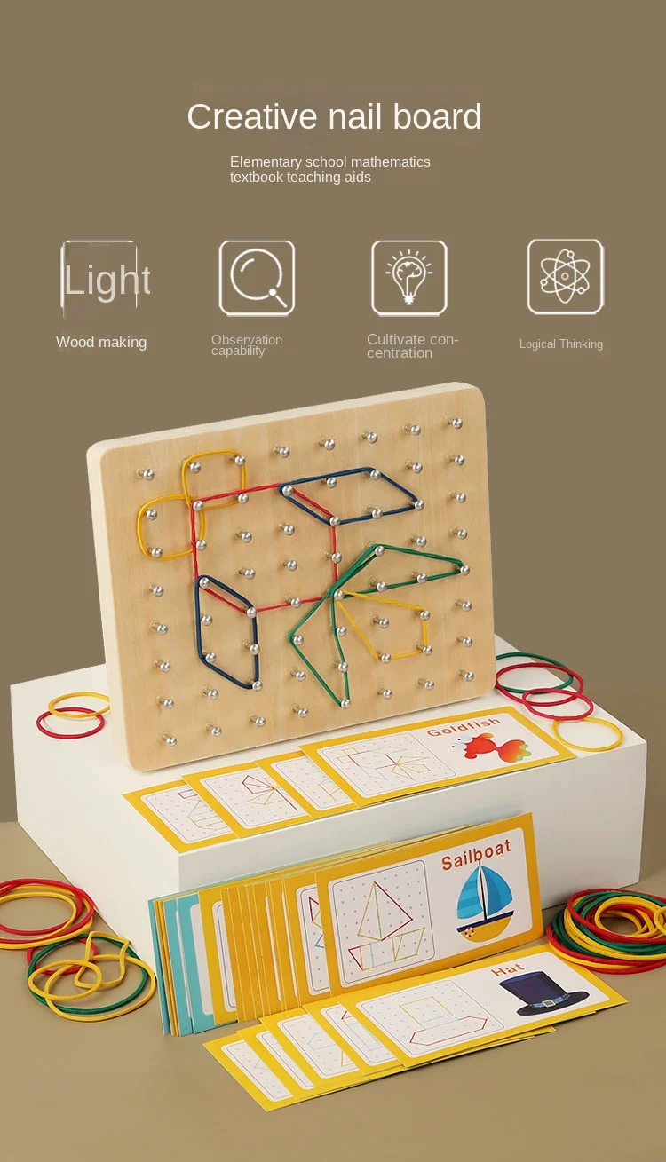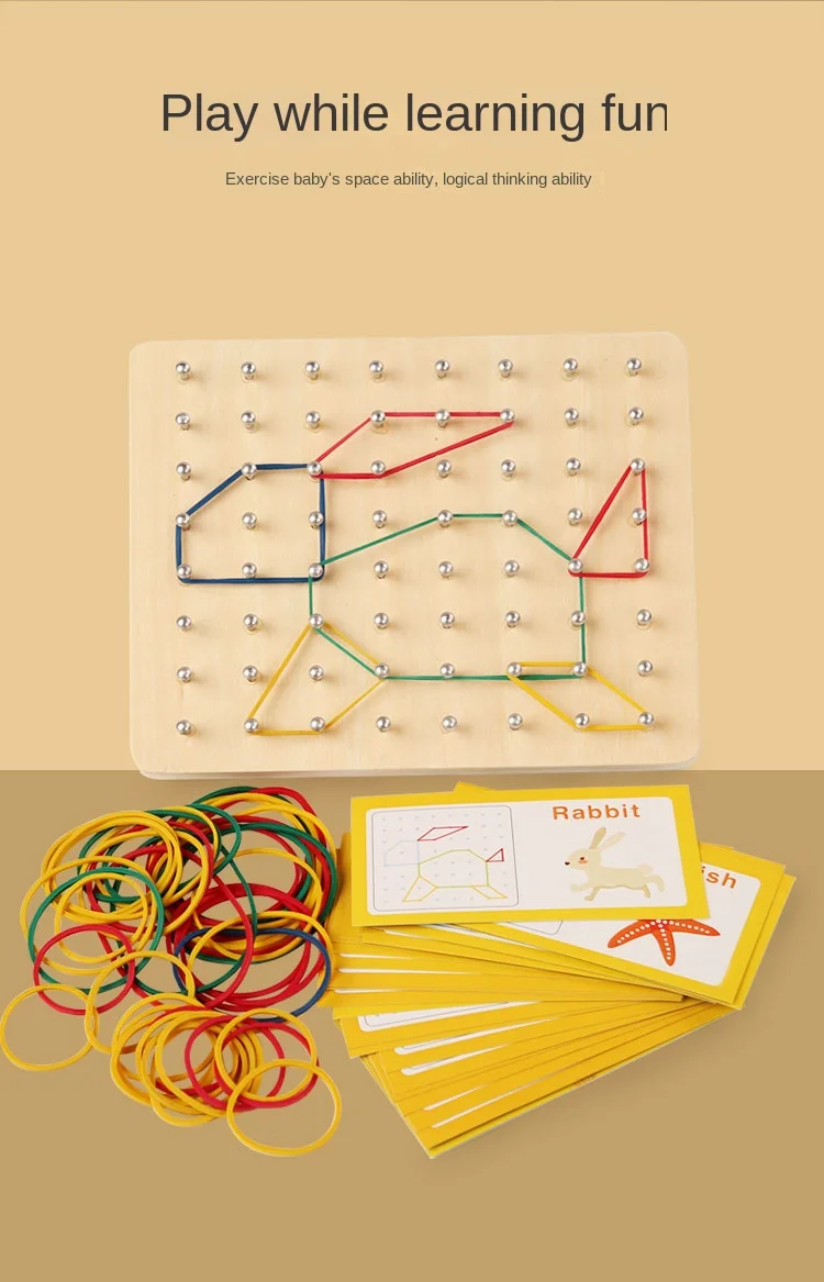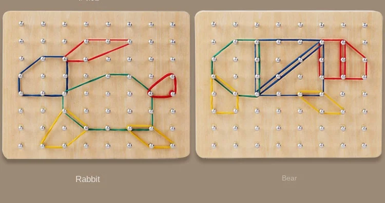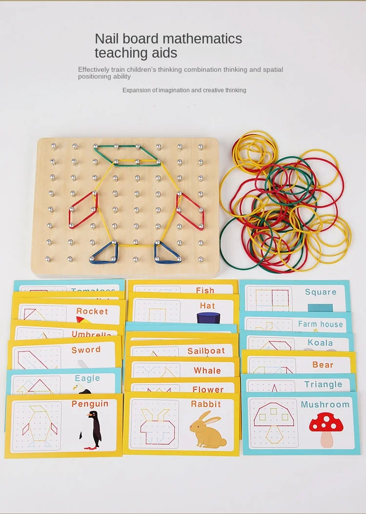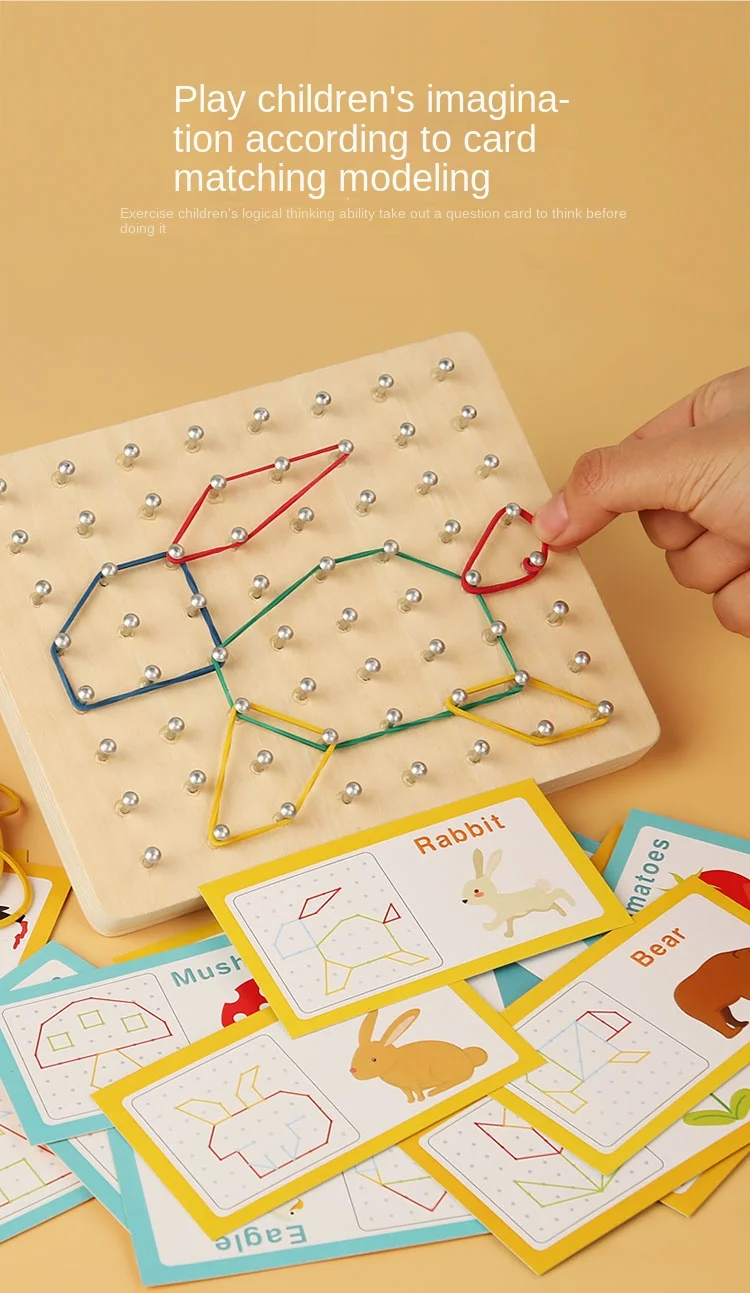 Wooden Montessori Geometric Creative Pegboard Graphic Jigsaw Puzzle Children’s Early Education Toy Puzzle Math Game Wood