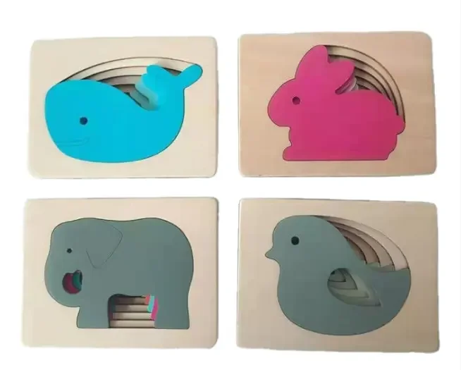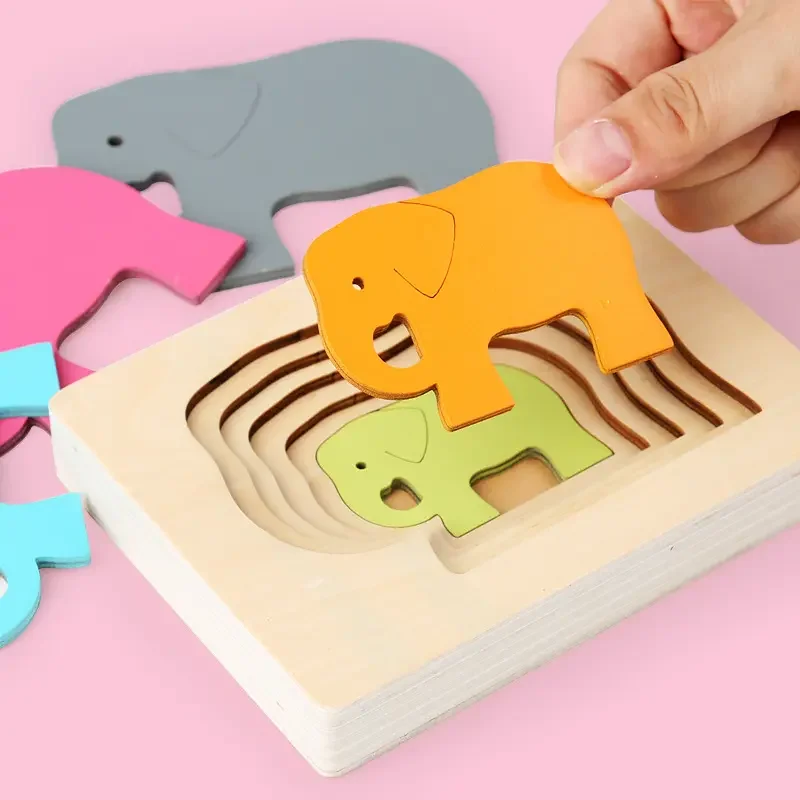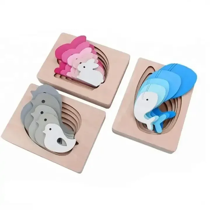 Wooden Multi Layer Puzzle Wholesale Learning and Playing Puzzle Game Educational Toys Animal Carton 3D Jigsaw Puzzles
