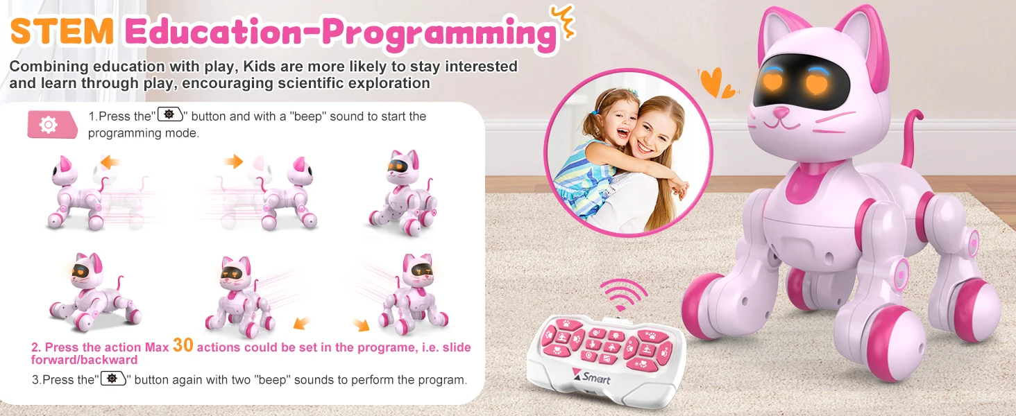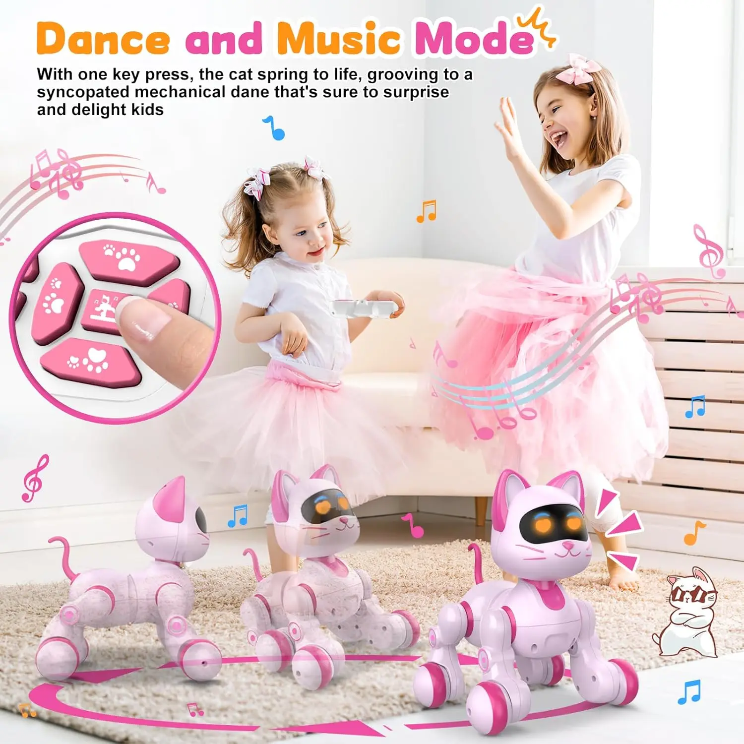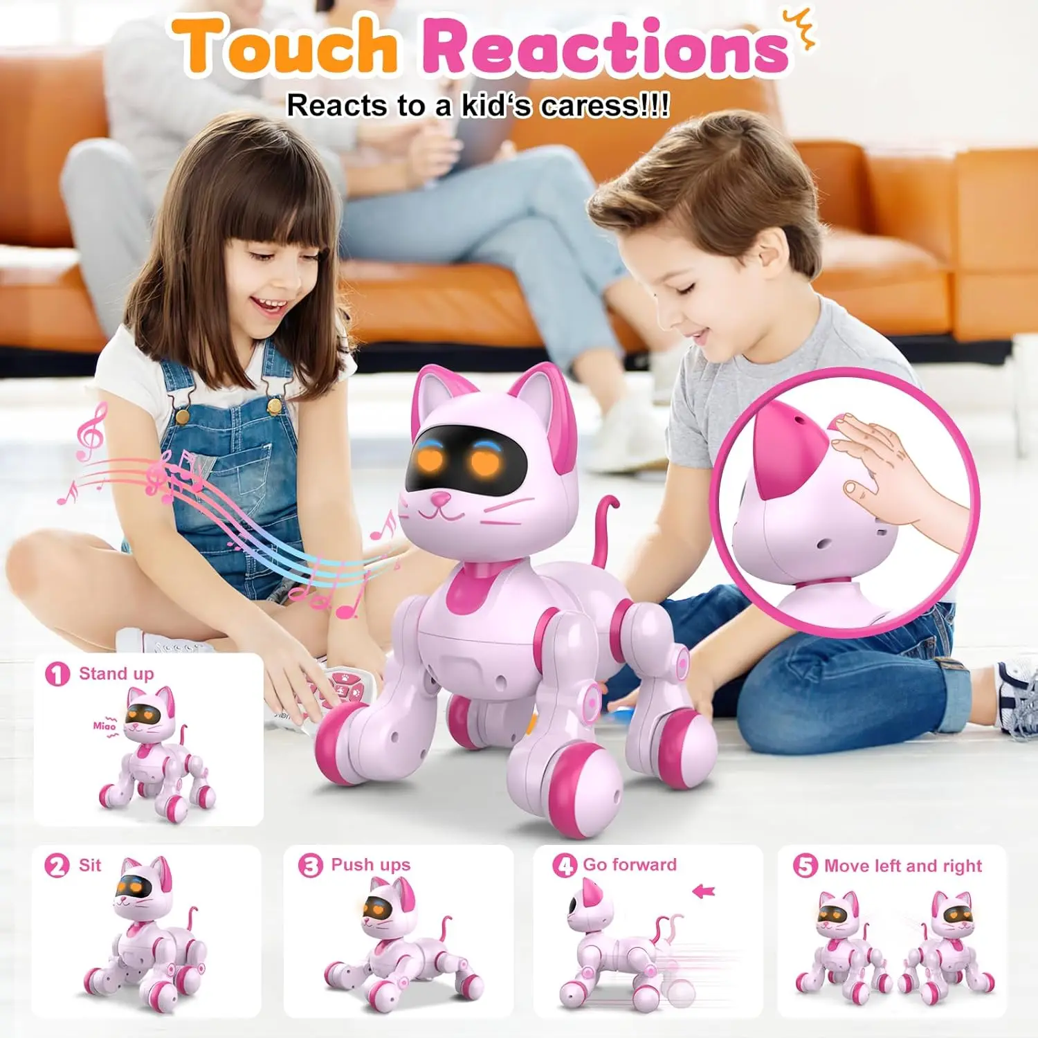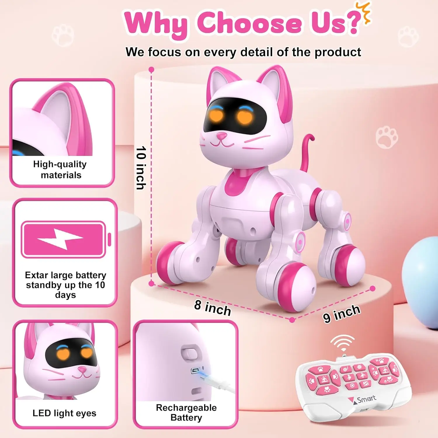 YX Programmable Robot Cat Toy with Voice Control for Kids, 2.4GHz Remote Control Cat Toy Robot Birthday Gift Toy for Girls