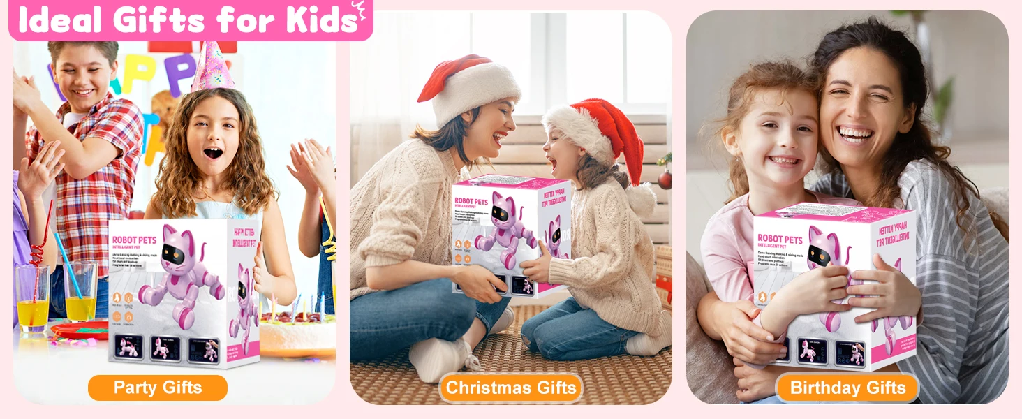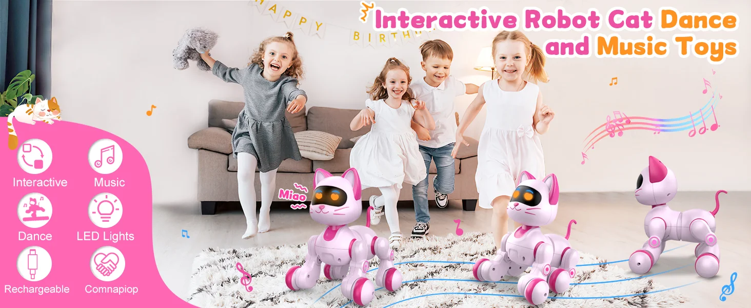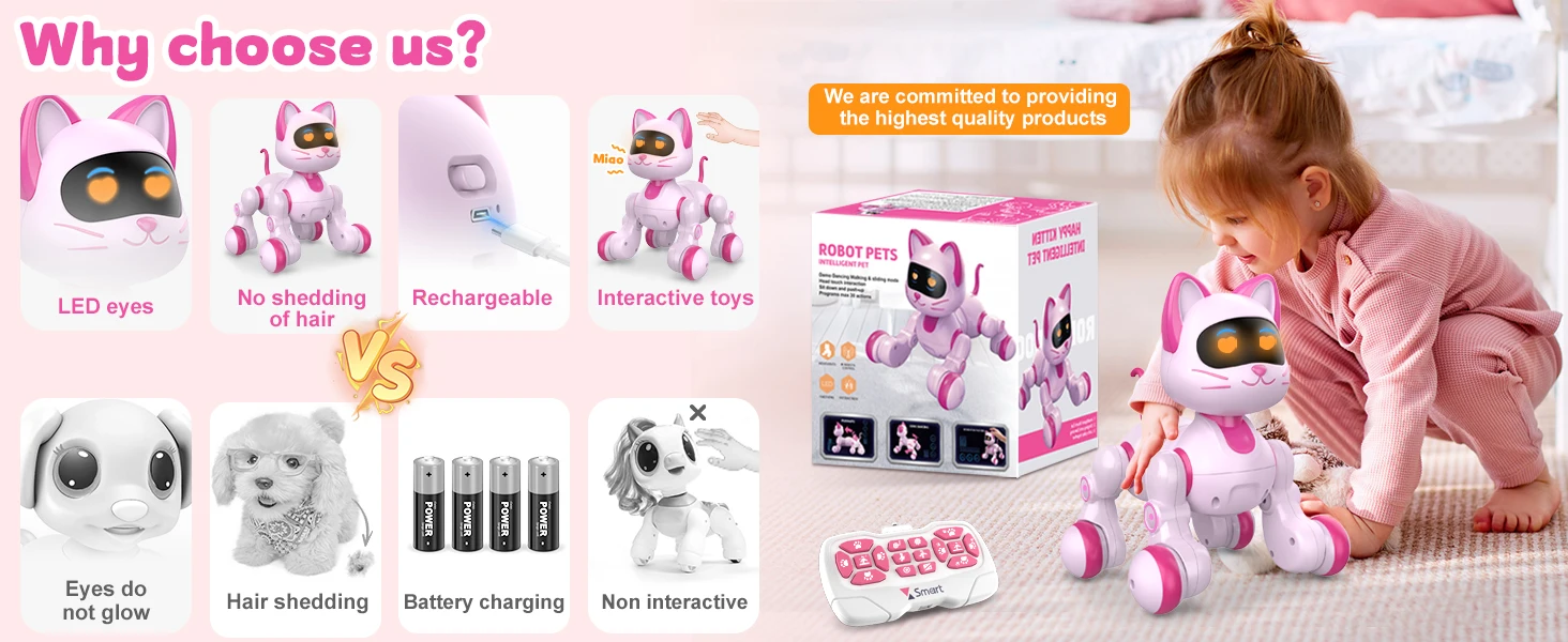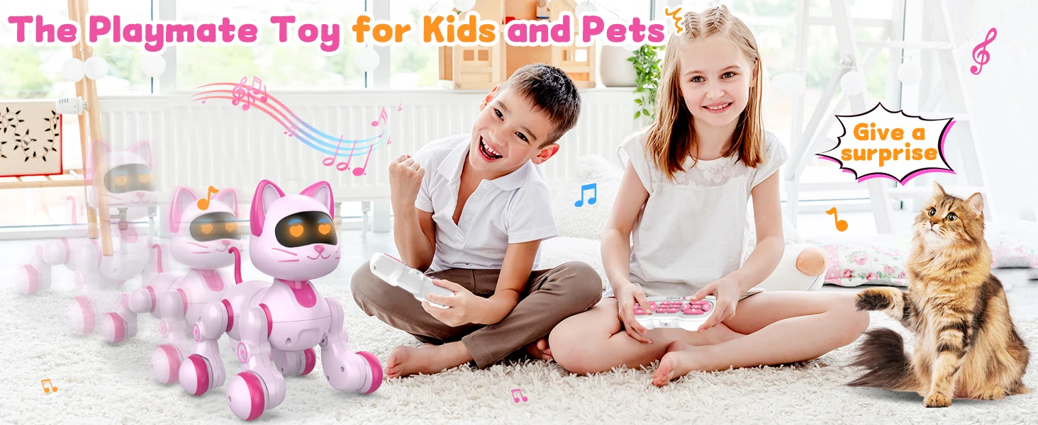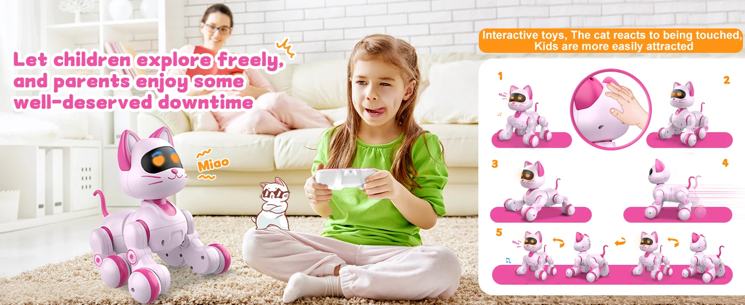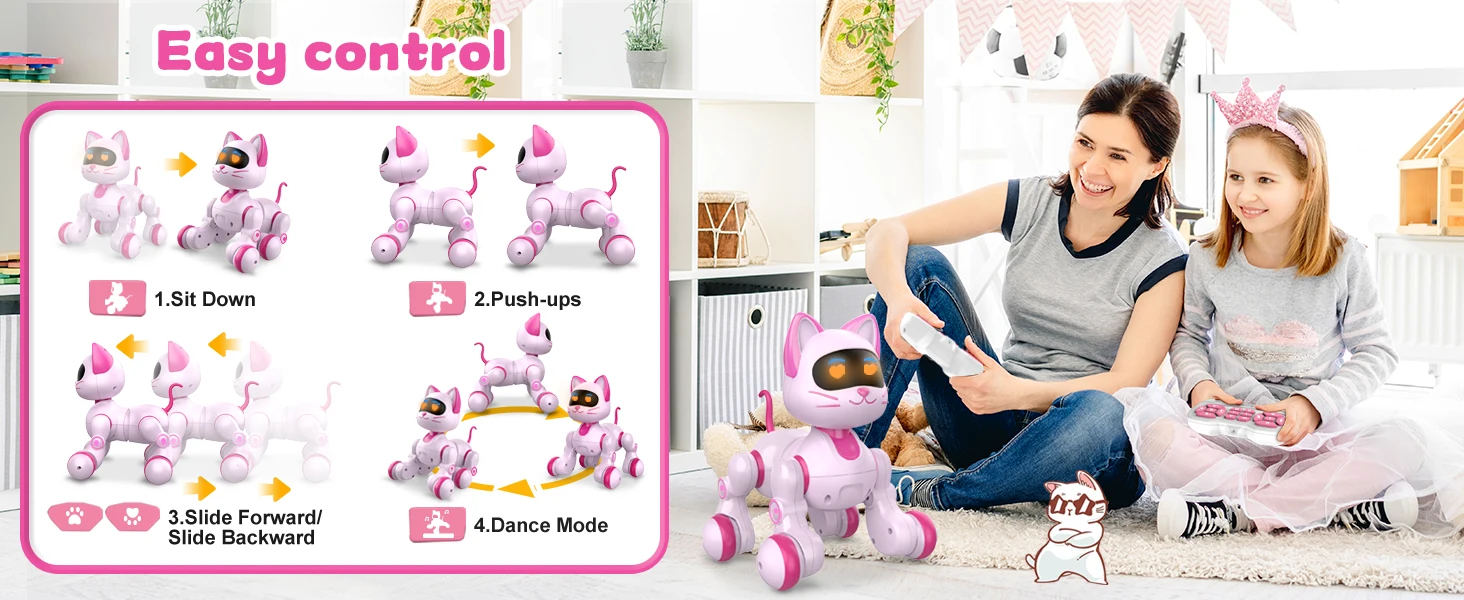 YX Programmable Robot Cat Toy with Voice Control for Kids, 2.4GHz Remote Control Cat Toy Robot Birthday Gift Toy for Girls