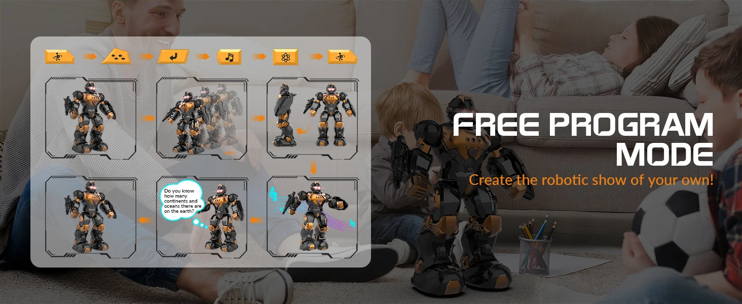 3. Intelligent Programming (Children can freely program the remote control keys to control the robot to display corresponding actions)